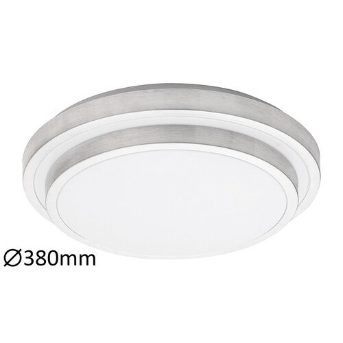 Plafoniera Aspen va fi un adaos spectaculos livingului Dvs. modern; bucatariei sau dormitorului: corpul lampii de metal si plastic este alcatuit din doua discuri cu diametre diferite fixate unul de celalalt. Modelul alb cu aluminiu slefuit are o sursa luminoasa tip LED incorporata; care economiseste energia. Puterea sursei luminoase de clasa A+ este de 24 W; intensitatea sa luminoasa este de 1290 de lumeni si durata de viata de 25 000 de ore. Temperatura sa de culoare este de 3000 K; astfel ca emite o lumina alb cald; creand in camera o atmosfera confortabila; intima. Cu diametrul de 380 mm si forma rotunda