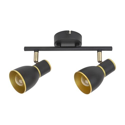 Spotul Mackenzie dublu este reprezentativ pentru stilul industrial. Modelul metalic; negru cu auriu; poate fi amplasat pe peretele livingului sau dormitorului si va aduce un plus de stil interiorului unei camere moderne. Cele doua lampi pot fi ajustate in functie de ce parte a camerei doriti sa iluminati mai puternic. Aceasta lampa poate fi folosita cu doua surse luminoase de pana la 40 W fiecare; tip de soclu: E14. Daca vreti sa sporiti atmosfera placuta; intima; alegeti surse de iluminat alb cald. Latimea totala a lampii echipate cu o baza decorativa rotunda este de 250 mm. Spotul dublu Mackenzie se livreaza fara sursa luminoasa.