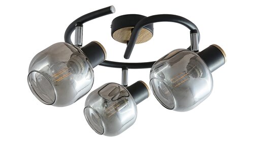spot lamp, black+oak pattern, smoke glass E14 3X MAX 40W