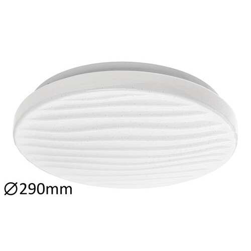 Cu efectul sau de lumina a stelelor; plafoniera Milena va fi un adaos placut pentru livingul sau dormitorul Dvs. in stil modern. Aceasta lampa inteligenta de culoare alba are variator si un comutator de perete in trei trepte; deci luminozitatea sa poate fi modificata dupa nevoie. Sursa sa de lumina integrata are o temperatura de cloare de 3000 K; deci in consecinta lampa ilumineaza cu lumina alb cald. Consumul de energie al sursei luminoase de clasa A este de 12 W; intensitatea sa luminoasa este de 840 de lumeni si durata de viata circa 30 000 de ore. Diametrul lampii rotunde din metal si plastic este de 290 mm si distanta de la tavan este de 65 mm. Plafoniera mare Milena are o garantie de 5 ani.