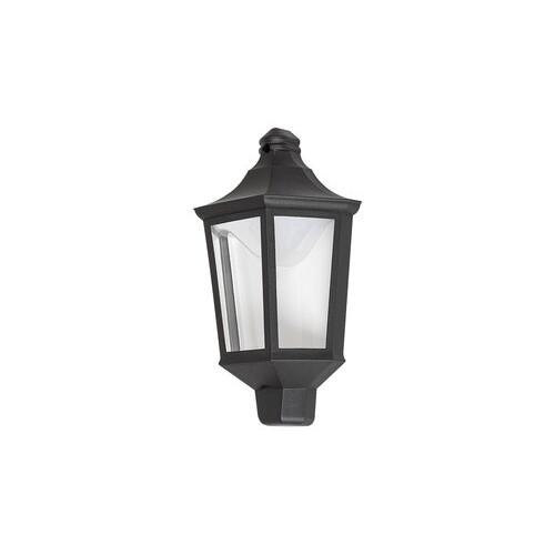 Lampa de perete de exterior Rosewell este recomandata celor care prefera stilul clasic. Cu corpul negru mat caracteristic si cu un abajur transparent; aceasta lampa creeaza o atmosfera extraordinara pe veranda casei Dvs. Sursa luminoasa LED incorporata ilumineaza imprejurimile cu o lumina alb cald; sporind astfel atmosfera placuta; intima. Puterea sursei luminoase de clasa A este de 8 W; intensitatea sa luminoasa este de 500 de lumeni